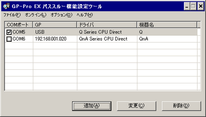 パススルー機能設定を起動し、以下のダイアログボックスで使用するCOMポートにチェックを入れて再度ラダーソフトよりモニタを開始してください。