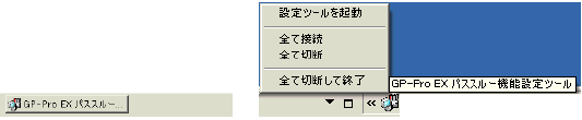 パススルー機能設定ツールが起動しているか、以下のようにタスクバーに最小化表示されているか確認してください。またはタスクバーの右端にパススルー機能設定ツールのアイコンが表示されているかどうか確認してください。