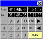 検索条件入力用キーボードが表示されます。[To]には選択したアラームの発報日時が、また[From]には[To]の1日前の日時が表示されます。必要に応じて時刻を調整します。