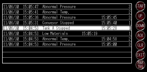分析したいアラームを選択し、[解析(発報時間)]スイッチをタッチします。
