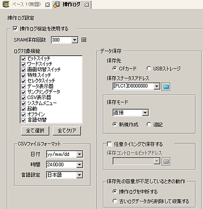 共通設定[操作ログ設定]が開きます。[操作ログ機能を使用する]にチェックを入れます。