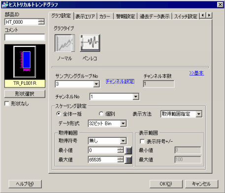 配置したヒストリカルトレンドグラフをダブルクリックすると、設定ダイアログボックスが開きます。