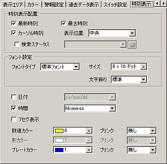 [時刻表示]タブを開き、表示したい時刻にチェックを入れます。[時間]で[hh:mm:ss]を選択し、[OK]をクリックします。ヒストリカルトレンドグラフが設定できました。