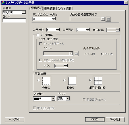 配置したサンプリングデータ表示器をダブルクリックすると、設定ダイアログボックスが開きます。