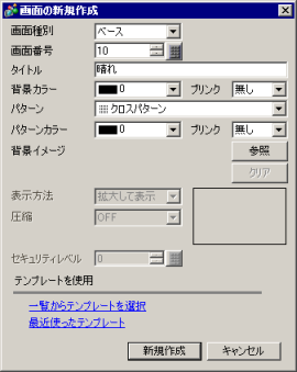 をクリックすると[画面の新規作成]ダイアログボックスが表示されます。