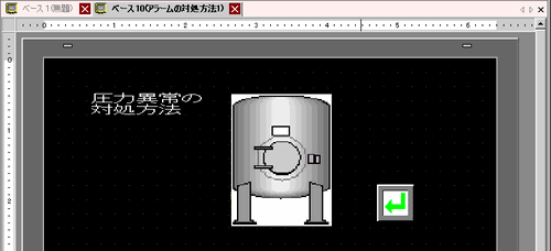 アラームを表示するアラーム部品を設定します。アラームを表示したい画面(例 : ベース1)を開き、 [部品(P)]メニューの[アラーム(A)]を選択するか、