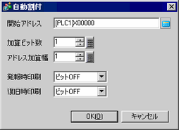 [自動割付]ダイアログボックスが表示されます。先頭指定したアドレスから指定した割合でアドレスを割り付ける設定を行います。