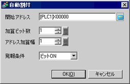 自動割り付けするビットアドレスの数を1~(アラーム設定の最大数-現在の行の位置+1)で設定します。