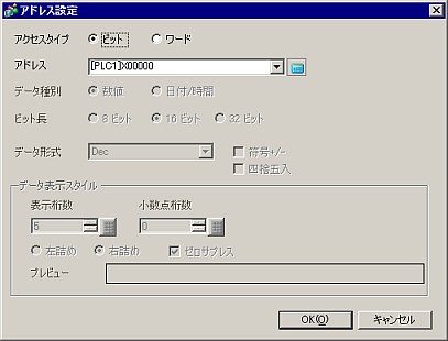 アドレスのタイプを[ビット]または[ワード]から選択します。