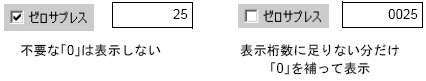 表示桁数を揃えるための「0」(ゼロ)を表示するかどうかを指定します。