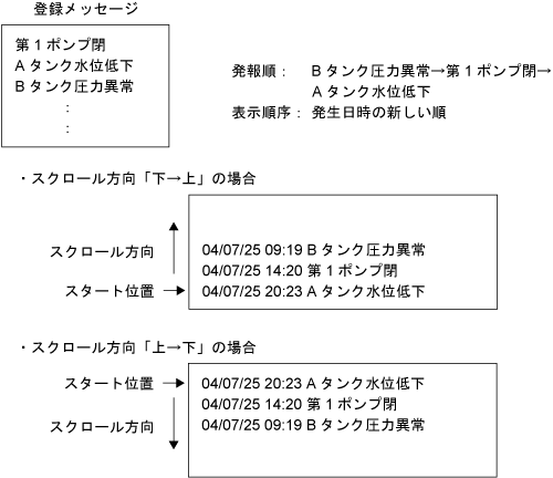 表示するアラームメッセージのスクロール方向を[下→上][上→下]から選択します。
