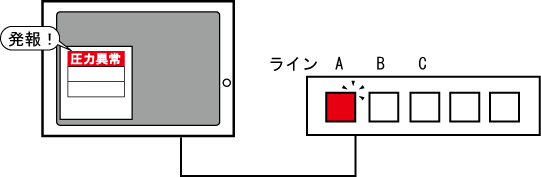 ラインや装置ごとのアラーム履歴を1つのスイッチで監視/操作します。EZイルミネーションスイッチの各スイッチに監視/操作対象のアラーム履歴を割り付けます。アラームの状態とレベルによってスイッチの色を変えることができます。