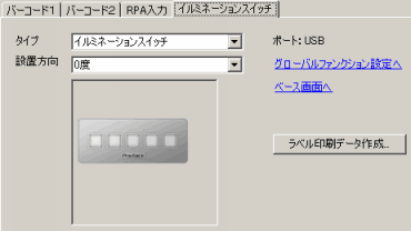 [入力機器設定]の[イルミネーションスイッチ]タブで、[ラベル印刷データの作成]をクリックします。