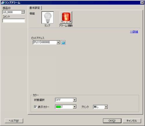 追加された部品IDをダブルクリックして、ランプアラームの設定画面を表示します。