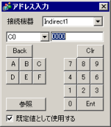 をクリックし、[アドレス入力]ダイアログボックスを開きます。[接続機器]で間接機器[Indirect1]を選択し、アドレスに「C00000」を指定して[Ent]をクリックします。
