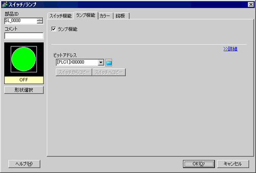 配置したランプをダブルクリックすると、設定ダイアログボックスが開きます。