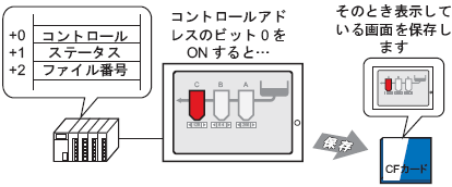 表示器が運転中に表示している画面を外部ストレージに保存(画面キャプチャ)することができます。保存した画面はJPEGファイル形式(*.jpg)で格納されます。