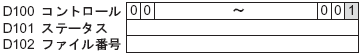 [コントロールワードアドレス]+2のアドレス「D102」にファイル番号を格納してから、[コントロールワードアドレス]「D100」の最下位のビット(ビット0)をONすると画面キャプチャが実行されます。(ファイル番号は、ファイル名「CP*****.jpg」の*****部分になります。)