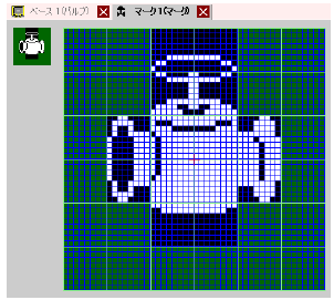 マークで作成したイメージデータをベース画面に呼び出して表示させることができます。マークでは独自の記号や絵をドットで描画します。