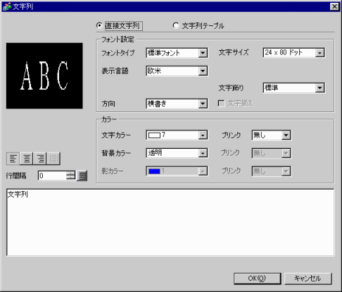 文字列を画面上に配置させ、ダブルクリックして[文字列]ダイアログボックスを開きます。