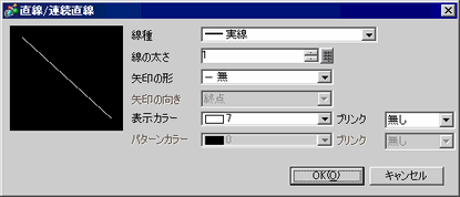 をクリックして画面に配置します。配置した[直線]または[連続直線]をダブルクリックすると次のようなダイアログボックスが表示されます。