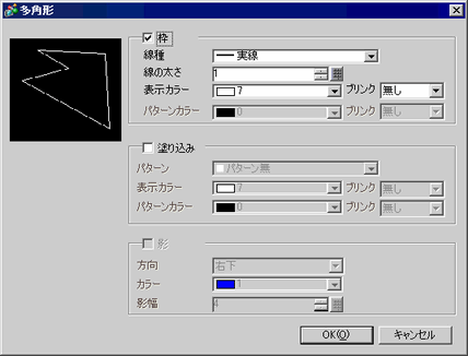 をクリックして画面に配置します。配置した[多角形]をダブルクリックすると次のようなダイアログボックスが表示されます。