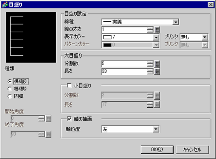 をクリックして画面に配置します。配置した[目盛り]をダブルクリックすると次のようなダイアログボックスが表示されます。
