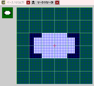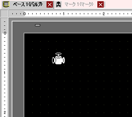 [ベース1]タブをクリックし、マークを配置するベース画面を開きます。[描画(D)]メニューの[画面呼出(O)]をクリックします。