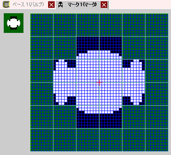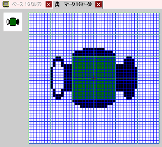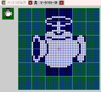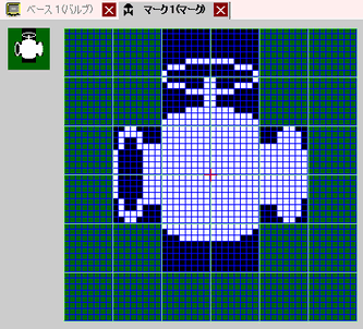 ドット(点)を利用して各部の微調整を行って完成です。[描画(D)]メニューの[ドット(D)]をクリックします。ドットの描画方法は、クリックするとON(白)し、右クリックするとOFF(黒)になります。