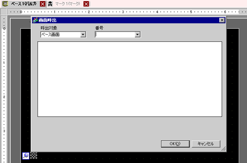 作画画面上でクリックすると、点線枠が配置され、[画面呼出]ダイアログボックスが表示されます。