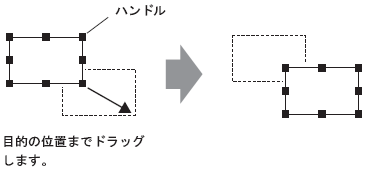 目的のオブジェクトを選択し、カーソルをオブジェクト上にあわせます。カーソル表示がになったら、オブジェクトを目的の位置までドラッグすると移動することができます。