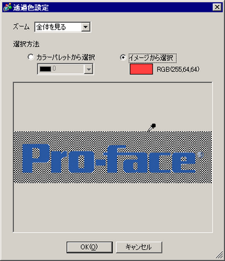 [透過]にチェックを付けると[設定]ボタンが有効になります。[設定]をクリックして表示される[透過色設定]ダイアログボックスでは、貼り付ける画像から直接スポイトで透過する色が選択できます。背景色の付いた画像を貼り付けるときに、背景色を透過して貼り付けられるので便利です。