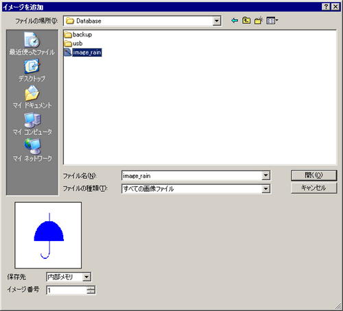[追加]をクリックすると、[イメージを追加]ダイアログボックスが表示されます。使用したい画像データを選択し、[開く]をクリックします。