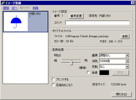 必要に応じて画像イメージにコメントを付けたり、明るさや色を設定し、[閉じる]をクリックします。これでイメージ登録が完了しました。