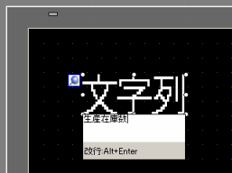 [文字列]を画面に配置すると、文字列入力枠が編集可能になりますので配置したい文字列を入力し、Enterキーを押します。(例 : 生産在庫数)