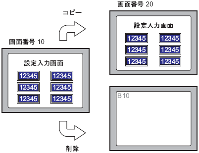 設定した画面番号とタイトル、画面の色を変更できます。 |