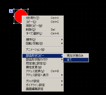 形状をコピーする部品を右クリックして表示されたメニューから[部品形状コピー]-[全て]をクリックします。