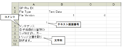 上記のCSVファイルをExcelで開いた場合、以下のようになります。