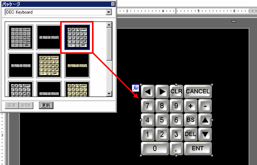 編集するキーボードを選択し、作画画面に配置します。(例 : DEC Keyboard)