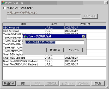 [新規作成]をクリックすると、 [パッケージの新規作成]ダイアログボックスが表示されるのでパッケージ名を設定します。(例 : Keyboard)