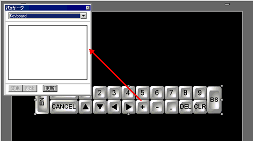 編集したキーボードはパッケージウィンドウの[お気に入り]に登録しておけば、直接ドラッグ&ドロップして画面に配置することができます。