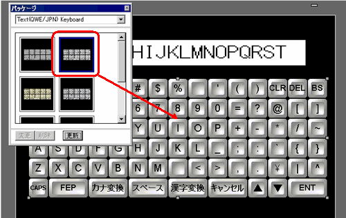日本語FEP機能のキーボードを選択し、作画画面に配置します。(例 : [Text(QWE/JPN)Keyboard])