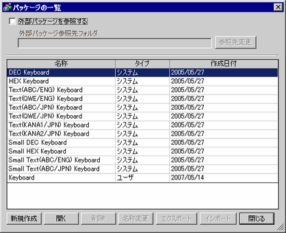 使用したいキーボードが登録されているパッケージ名(例 : Keyboard)を選択し、[開く]をクリックすると[パッケージ]ダイアログボックスが表示されます。