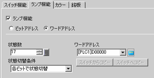 [ワードアドレス]にランプの色分けを表示するアドレスを設定します。(例 : D100)