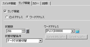 [ワードアドレス]にランプの色分けを表示するアドレスを設定します。(例 : D100)