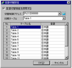 各テーブルで使用する言語を選択し、[OK]をクリックします。