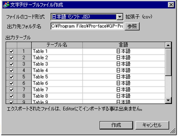 [作成]ボタンをクリックすると[出力先フォルダ名]で指定した出力先に文字列テーブルファイルが作成されます。