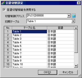 [初期テーブル]には、指定した[切替制御ワードアドレス]に「0」が入っているときに表示するテーブルを設定します。