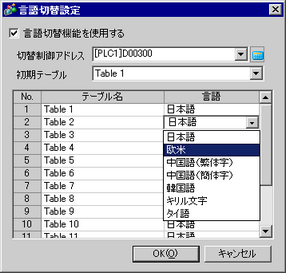 各テーブルで使用する言語を選択し、[OK]をクリックします。