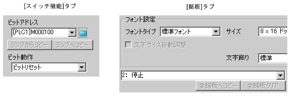 画面で使用するスイッチの銘板として、文字列テーブルを使用します。